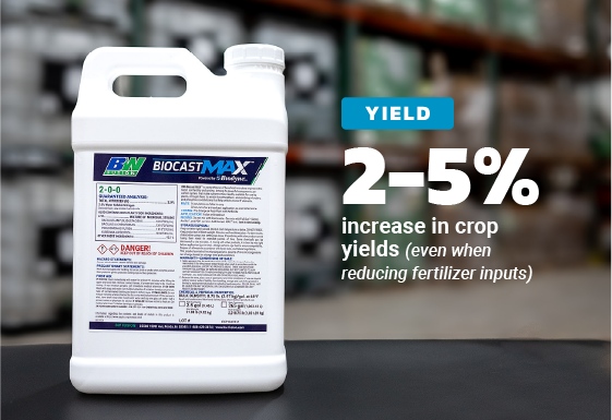 Biocast MAX™ helps you cut inputs, keep yield, and do more with what you already have. It is engineered to reduce your reliance on commercial fertilizer by releasing nutrients like nitrogen, phosphorus, and potassium that are already in your soil.